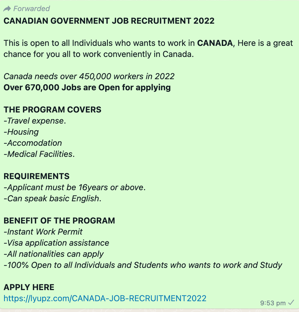 Hoax This Scam Website Is Promoting Job Opportunities Purportedly Offered By The Canadian Government By Pesacheck Pesacheck